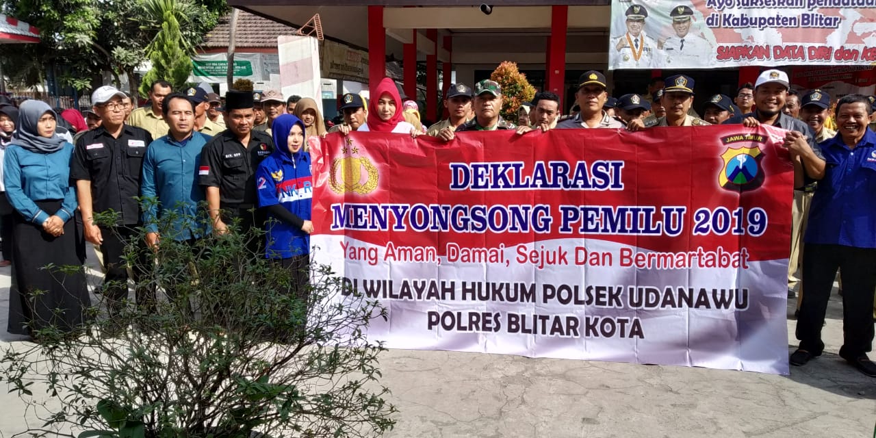Udanawu-dalam rangka mensukseskan pemilu Tahun 2019 di Kecamatan Udanawu dilaksanakan deklarasi pemilu damai tahun 2019 yang diikuti oleh Muspika dan calon legislatif di wilayah kecamatan udanawu dari partai PDIP, gerindra, nasdem, Perindo, PPP, PAN, demokrat, dan PKS. Deklarasi diawali terlebih dahulu dengan apel pagi rutin setiap senin yang diikuti oleh …