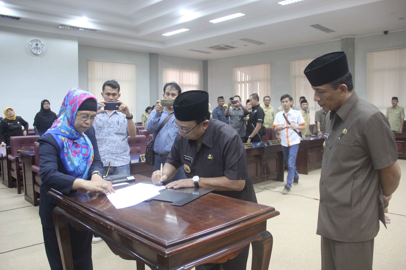 Bupati Bliar Drs. Rijanto, MM menandatangani nota Rancangan Awal RPJMD Kabupaten Blitar 2016-2021, antara pemerintah daerah dengan DPRD Kabupaten Blitar, di Graha paripurna DPRD Kabupaten Blitar, Kamis (16/6). Penandatanganan ini juga dilakukan Ketua DPRD Kabupaten Blitar Suwito Saren Satoto, Wakil Ketua DPRD Kabupaten Blitar Heri Romadho, Maskur dan Sugiato. …