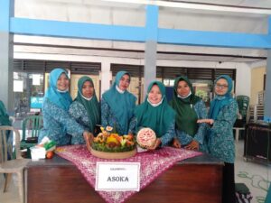 Pembagian kelompok ini bertujuan agar Ibu-Ibu lebih mudah berkoordinasi dan bekerja sama satu sama lain. Tak hanya itu pembagian kelompok juga lebih memudahkan Ibu Kurnia untuk mengajari, mengarahkan sekaligus mencontohkan pada Ibu-Ibu bagaiman cara membuat garnis dari sayur-sayuran, menghias sayuran agar lebih menarik, menata garnis pada tumpeng, mengukir buah semangka serta memanfaatkan bahan pendukung lainnya untuk menghias tumpeng agar terlihat lebih menarik dari tumpeng pada umumnya.