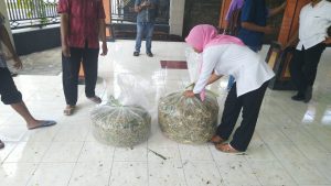 - Siramkan campuran bahan kedua pada bahan pertama aduk sampai rata, setelah rata masukkan kedalam plastik sedikit demi sedikit, setelah rata ikat dengan kuat dan diusahakan tidak ada udara yang masuk;