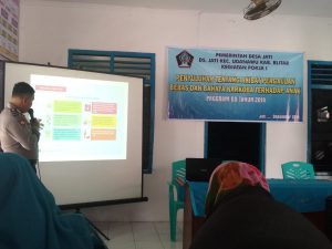 Udanawu-Masa remaja merupakan masa peralihan antara masa kanak-kanak dan masa dewasa, yang dimulai pada saat terjadinya kematangan seksual antara usia 11/12 tahun sampai dengan 20 tahun. Tahap perkembangan remaja harus diselesaikan. Remaja biasanya merasakan adanya tekanan agar mereka menyesuaikan dengan norma-norma dan harapan kelompoknya. Maka, untuk menghindari keterlibatan remaja agar tidak terjerumus dalam pergaulan Bebas dan penggunaan Narkoba, Desa Jati menyelenggarakan penyuluhan akibat bahayanya pergaulan Bebas dan Narkoba pada Kamis, 19 Desember 2019 dengan peserta dari ibu-ibu PKK Desa Jati dengan Narasumber dari Kepolisian sektor Udanawu. Oleh sebab itu, untuk meminimalisir terjerumusnya remaja pada pergaulan bebas dan narkoba perlu adanya perhatian, pengawasan dan perlunya diberikan pendidikan seksual sejak dini baik dari keluarga maupun masyarakat. –by rdnh