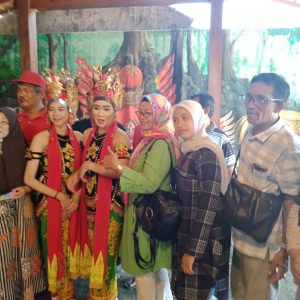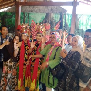 Blitar-Setelah melihat-lihat ciri khas dari rumah adat suku osing, giliran tarian khas yang selanjutnya disuguhkan kepada rombongan, karena jarak antara rumah adat dan tempat pertunjukan tari tidak begitu jauh maka rombongan berjalan untuk menyaksikan pertunjukannya. Selain tarian, rombongan juga disuguhi teh dan kopi hangat sekaligus kue cucur dan lepet. Setelah 5 menit menunggu dan menikmati hidangan yang disajikan, akhirnya tarian yang ditunggu-tunggu siap untuk disajikan. Tari Gandrung merupakan salah satu tarian yang dimiliki oleh masyarakat Banyuwangi selain tari seblang, padhang ulan, Cengkir Gading dan Jaranan Buto. Tari gandrung dulu kala merupakan tarian yang hanya digelar untuk merayakan panen atau musim panen, tarian ini terinspirasi dari pesona Dewi Sri yang dianggap pada jaman dulu sebagai Dewi Padi dan Kemakmuran. Sebelum tarian dimulai, tetua adat menceritakan asal mula tari gandrung, selain karena terpesona oleh Dewi Sri, awalnya tarian ini diperankan oleh laki-laki yang berdandan seperti perempuan, karena agama islam telah menyebar diseluruh wilayah banyuwangi dan banyak tokoh agama yang menentang hal tersebut maka tarian tersebut di bawakan oleh perempuan dan sampai sekarang. Pertunjukan tari gandrung berlangsung selama 15 menit dan dibawakan oleh 2 (dua) orang penari, dalam sela-sela menari pak camat dan bu camat, serta pak sekcam dan kasi Pemerintahan diajak untuk ikut menari sehingga suasana semakin meriah karena ternyata sebagian dari kami tidak bisa menari. –by rdnh